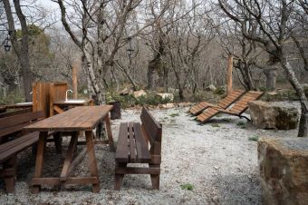 Просторный номер с кухней оформлен в эко - стиле полностью из натуральных материалов.