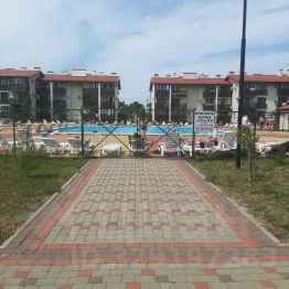 На территории ЖК два бассейна, детские и спортивные площадки, лужайки, большое количество парковочных мест.
