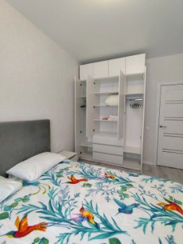 В комнате установлены вместительные шкафы и современная кровать. Просторная кухня оснащена всей необходимой техникой, включая холодильник и микроволновую печь, духовой шкаф и.д. В ванной комнате совмещенный санузел с качественной сантехникой и стиральной машиной.В квартире подключено кабельное/цифровое ТВ, Wi-Fi.