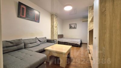 Жилая комната: единое пространство, где зона отдыха и спальное место находятся в одной комнате. Вместительный угловой диван с журнальным столиком, полноценная двуспальная кровать, кондиционер. Декоративные колонны с имитацией камня, стильные постеры и продуманное освещение создают современную уютную атмосферу.