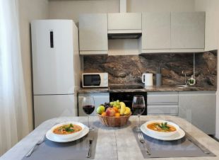 Кухня: Плита, микроволновка, холодильник, чайник и вся необходимая посуда. Чай, кофе и сахар уже ждут вас!