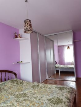 В прихожей большой встроенный шкаф для хранения ваших вещей и полочки для мелочи. В спальне встроенные шкафы и 2-спальная кровать. Санузел совмещенный, стиральная машинка есть.