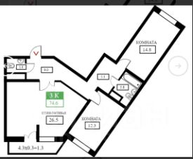 Сдается в аренду просторная трехкомнатная квартира с дизайнерским ремонтом, расположенная на 6-м этаже кирпичного дома, построенного в 2021 году. Общая площадь квартиры — 76 кв. м, жилая площадь — 28 кв. м, площадь кухни — 27 кв. м. Высота потолков составляет 2.7 метра. Из окон открывается вид как на улицу, так и во двор. В квартире есть один балкон.