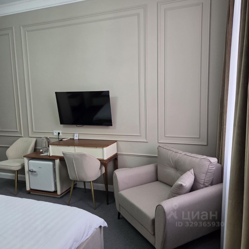 Номер с двуспальной кроватью, оснащен телевизором, зеркалом, журнальным столиком, холодильником, системой кондиционирования, сейфом, чайником, набором посуды, системой Wi-Fi. Санузел оснащен современной душевой кабиной, феном, средствами личной гигиены, махровый халат, тапочки. По заезду предоставляется чай, бутилированная вода.