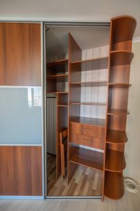 • всё необходимое для жизни (двухспальная кровать, раскладывающийся диван на кухне, стол, стиральная машинка, бойлер, микроволновая печь, кондиционер, просторный шкаф-гардеробная);