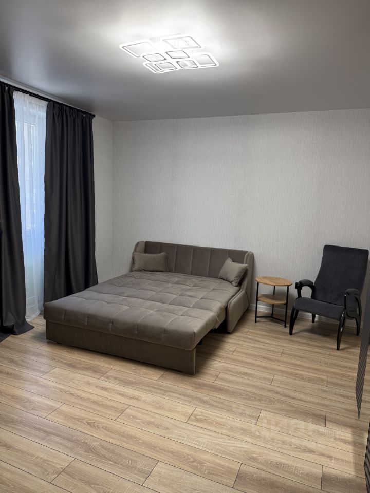 Светлая и уютная квартира-студия! Новый ремонт и абсолютно новая техника и мебель(холодильник в наличии). Вы будете первыми жильцами. Студия очень просторная, отдельная ниша для кухни. Имеется все необходимое для проживания. В жк установлено видеонаблюдение, во дворе игровые и спортивные площадки, в доме магазины, аптека. Все необходимое в шаговой доступности.