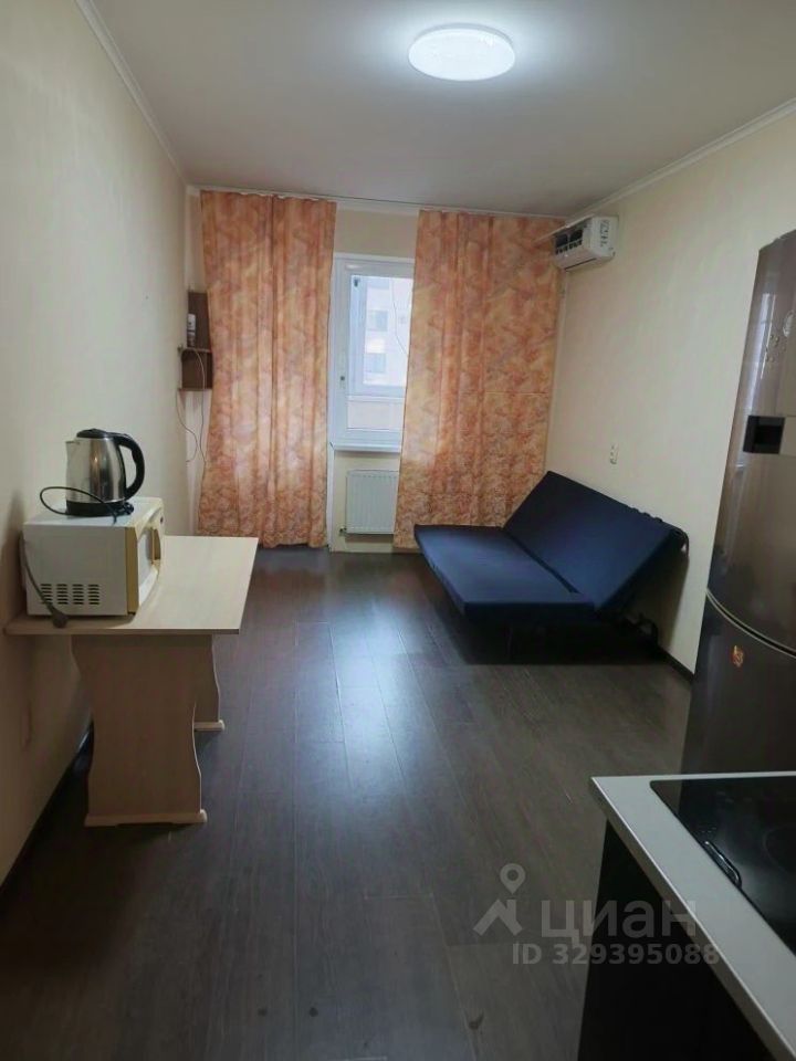 В квартире сделан косметический ремонт. Студия меблирована и готова к комфортному проживанию: в комнате есть вся необходимая мебель, что идеально подходит для одного человека или пары. Из техники в вашем распоряжении кондиционер, холодильник и стиральная машина. В санузле установлена душевая кабина. Также имеется балкон для вашего удобства и отдыха.