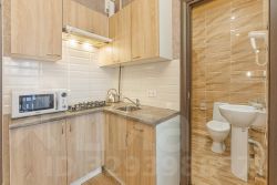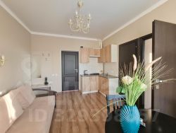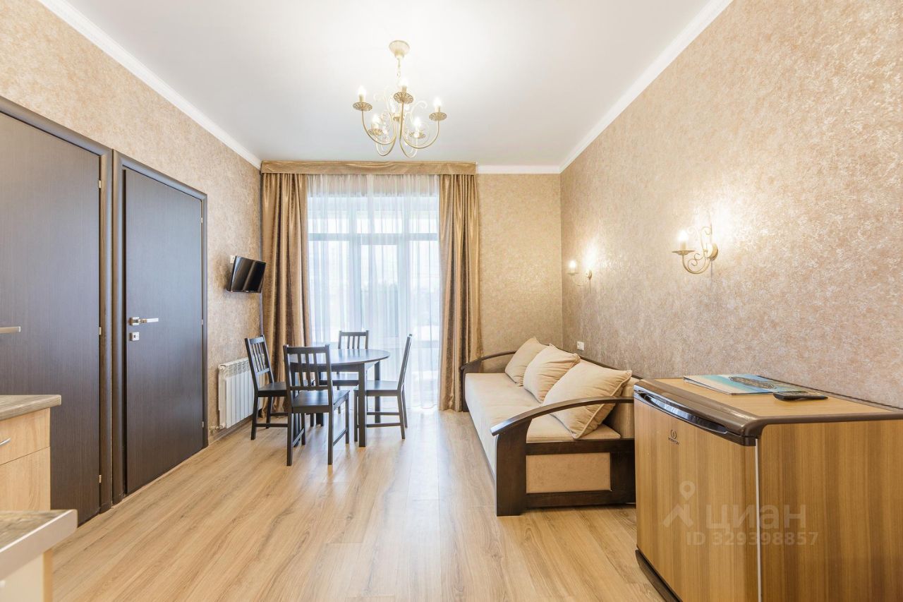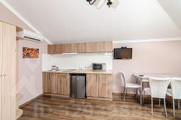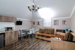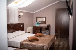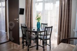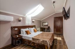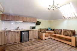 Двухкомнатный номер общей площадью 27 или 33 кв.м., сан. узлом и кухней. В номере двуспальная кровать, раздвижной диван, прикроватные тумбочки, шкаф, стулья, журнальный столик, зеркало, сплит. система, 2 телевизора, холодильник, сейф, туалетные принадлежности.