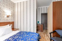 Одноместный номер с возможностью дополнительного размещения. Общая площадь 12 кв.м. с балконом. В номере одна двуспальная или две односпальных кровати, прикроватные тумбочки, шкаф, стул, журнальный столик, зеркало, сплит. система, телевизор, мини-холодильник, сейф.