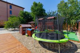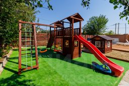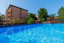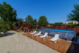 Объект имеет хорошее расположение до моря всего 250 метров. На территории имеется шикарная детская игровая площадка. Есть большой каркасный бассейн с зоной отдыха и шезлонгами. Большая территория с плодовыми деревьями. 2 беседки с мангалами. Бесплатный wi-fi на всей территории гостевого дома. Номера различной вместимости с индивидуальными балконами, а также парковка.