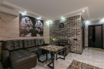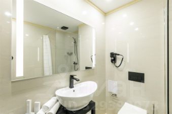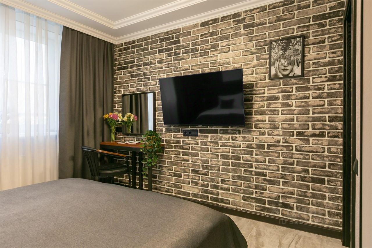 Большая площадь апартамента делает помещение светлым и воздушным. Интерьер номера выполнен в единой концепции с преобладанием натуральных материалов. Мягкое освещение придают номеру дополнительный шарм.