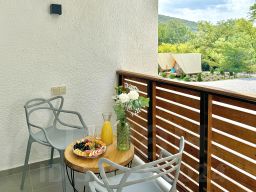 На территории размещены 14 современных домиков различных категорий и эко-отель на 24 номера, расположенных в ухоженной парковой зоне вдоль горного ручья Чухабль. Каждый домик оборудован всем необходимым для полноценного и комфортного пребывания гостей: кондиционер, холодильник, большая двуспальная кровать, сейф, отдельная ванная комната, бутилированная вода, набор косметики, халаты, тапочки, пляжные полотенца и многое другое. У всех домиков есть собственная открытая терраса с удобной мебелью для принятия солнечных ванн и релакса.