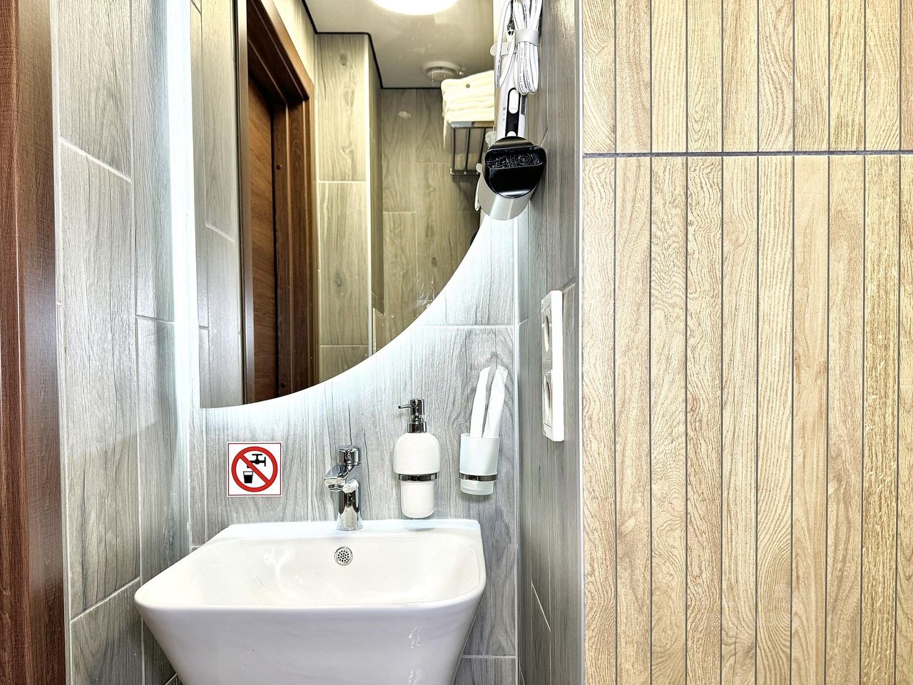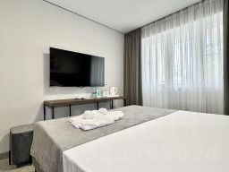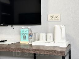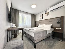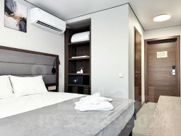 Данная категория номера состоит из одной комнаты. В комплектацию входит одна двуспальная кровать, 2 тумбочки, телевизор, кондиционер, мини-холодильник, стол, стул, фен, сейф, чайная станция. Гостям ежедневно предоставляется