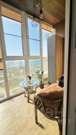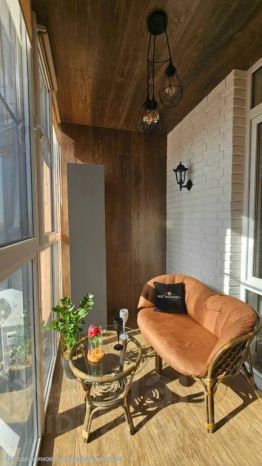 Завораживающий вид на город с больших панорамных окон на лоджии с шикарным ремонтом выполненным в стиле-LoFT.