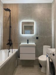 Из мебели и техники в квартире имеется: комод, кухонный гарнитур, эл.плита, вытяжка, стол, 4 стула, холодильник, микроволновая печь, прихожая в гардеробной, стол журнальный, телевизор, диван, тумба и зеркало в ванной, стиральная машина.