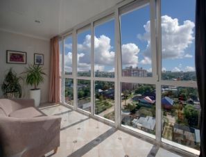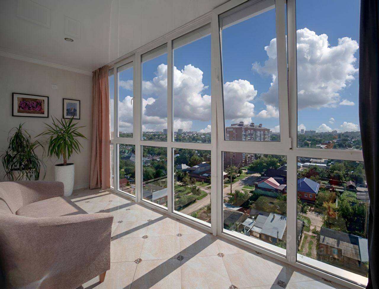 Пятиметровая лоджия с панорамным остеклением, великолепный вид, особенно на закате