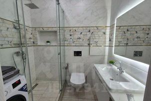 • Современная ванная комната с душевой, , свежими полотенцами и средствами гигиены