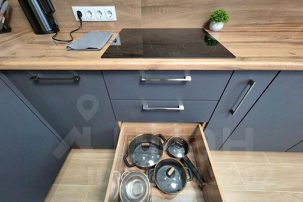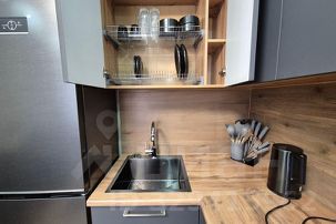 • Полностью оборудованная кухня с современной техникой (холодильник, плита, микроволновка) и всем необходимым для приготовления пищи.