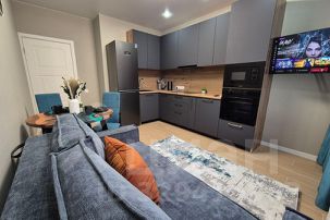 • Просторная кухня-гостиная с уютным диваном, телевизор со Смарт-ТВ и Wi-Fi., идеально подходящая для отдыха после насыщенного дня.