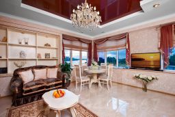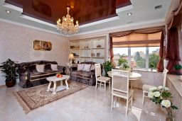 Кровать двуспальная с ортопедическим основанием и гиппоаллергенным бельем , 2 тумбочки, хорошо освещаемый рабочий стол, обувница, мини-бар, журнальный столик, шкаф двухстворчатый, система кондиционирования с индивидуальной регулировкой температуры , настенный ж/к телевизор LED, ковровое покрытие, набор посуды , сейф, набор для глажения, душевая комната с зеркалом для макияжа и феном, индивидуальная косметика по уходу , махровый халат, набор белоснежных полотенец, тапочки, бесплатный Wi-Fi доступ, высота потолков 2,90м. Душевая комната с индивидуальными средствами ухода и набором банных принадлежностей (халат, тапочки, 4 полотенца).,гидромассажная ванная, массажное кресло ямагучи.