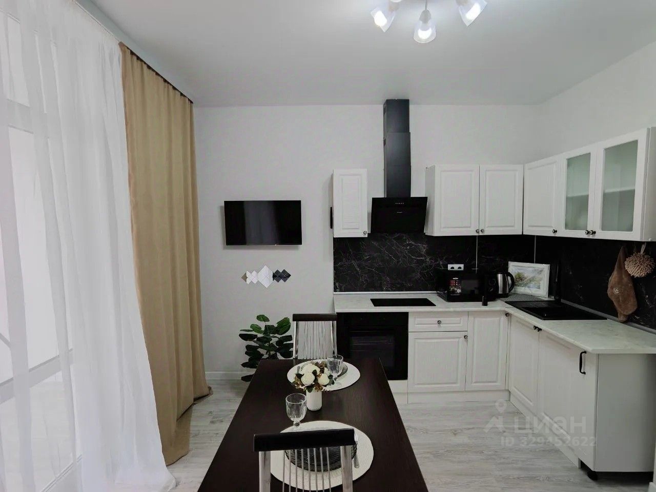 Бытовая техника : wi-fi, холодильник, варочная панель, духовой шкаф, мощная вытяжка, микроволновка, чайник , стиральная машинка, утюг , фен , Смарт ТВ, сушилка, пылесос