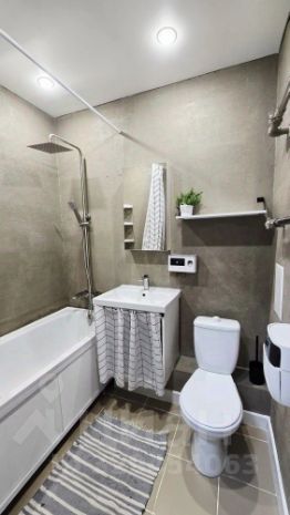 Санузел совмещённый, оформлен в современном стиле. Балкон застеклён и обустроен для комфортного отдыха. Вид из окон открывается на городские пейзажи.