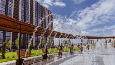 Развитый микрорайон со всем необходимым, есть свой парк и фонтан. На первом этаже дома пятерочка.