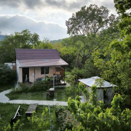 Отдельно расположен на краю большого участка с видом на горы, горную речку и долину. Дом находится рядом с заповедником, вокруг можжевеловые рощи, воздух идеален для аллергиков и астматиков.