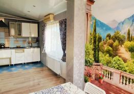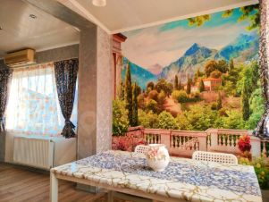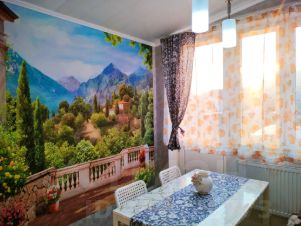 Апартаменты состоят из 4х комнат : гостиная 22 кв.м ( с раскладным диваном и 2 сп.кроватью) , спальня (с 2 сп. кроватью) , детская комната ( с 2 сп. и 1 сп. кроватью) , большая кухня-столовая с великолепным видом на горы и санатории с диванчиком-кушеткой, после свежего ремонта ( пол, стены, батареи...)
