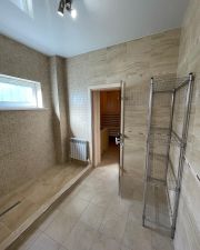 Можно покупаться в бассейне с родниковой водой, с подогревом 27-28 градусов и позагорать. Отдохнуть и поиграть на газоне. Можно попариться в баньке на дровах.