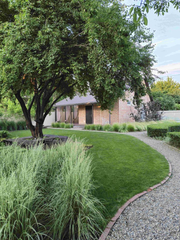 Красивый сад, ландшафтный дизайн, бассейн, зона очага, гамаки, качели, терраса, газон, каминный зал, банный чан.