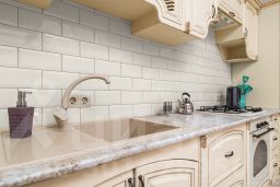 Кухня, холодильник, стиральная машинка, электроплита, Яндекс ТВ, посуда для 10 персон.
