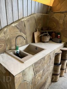 Очень большая и комфортная кухня с мангальной зоной,сделано все на совесть,имеется кресло качалка.