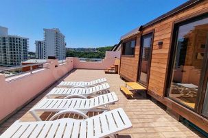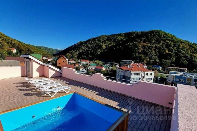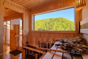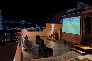 Наверху дома — эксплуатируемая крыша с очень красивыми панорамными видами. На крыше установлена сауна (с комнатой отдыха и душевой), подогреваемая купель и шезлонги.