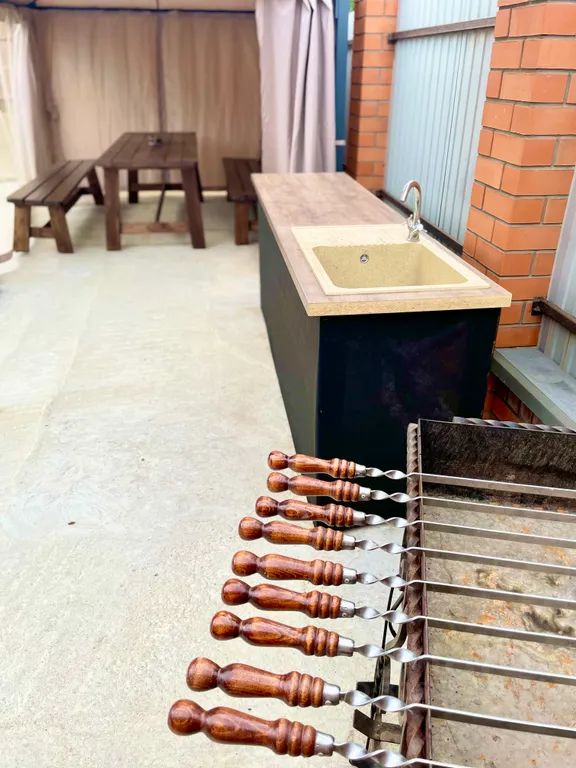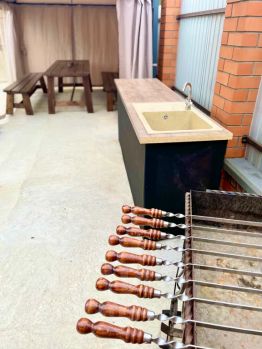 Мангал под навесом, с зоной для готовки и раковиной. Мангальные принадлежности и посуда предоставляются! С собой только уголь для мангала).