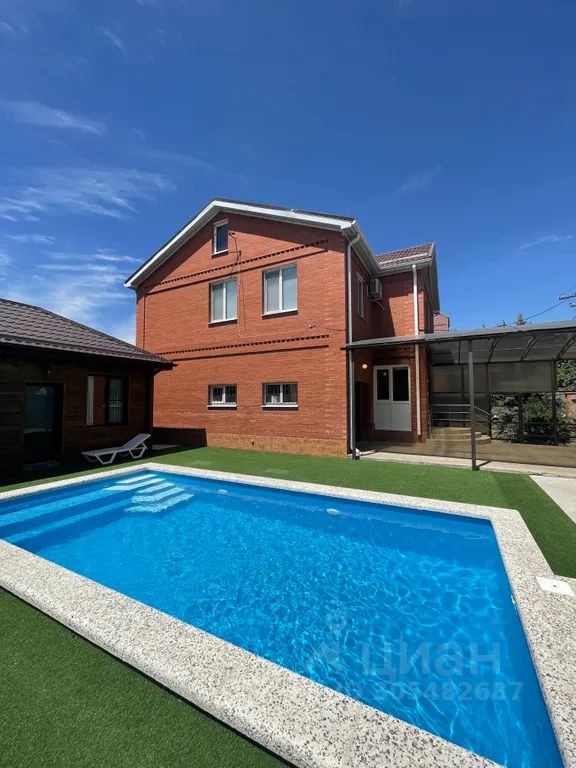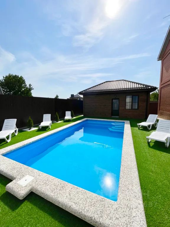 Бассейн с круглогодичным подогревом, летом +30, зимой +34, подсветка бассейна, размеры бассейна 7 м на 3, 5 м, глубина 165 см.