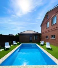 Бассейн с круглогодичным подогревом , летом +30, зимой +34 , подсветка бассейна, размеры бассейна 7 м на 3,5 м, глубина 165 см.