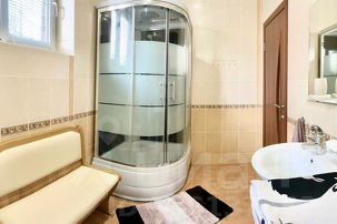В доме 5 спален ,банкетный зал на 18 персон, спальных мест 17, 2 санузла ( душевая и ванная комната)