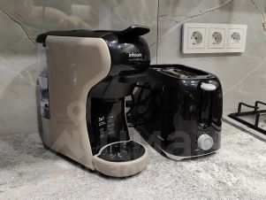 Кухня с кофемашиной и полным комплектом посуды на всю семью! Также микроволновая печь, тостер, холодильник, духовой шкаф, варочная панель, электрочайник, кулер с водой (горячая/холодная).