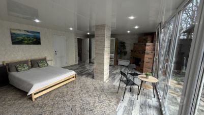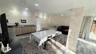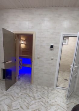 зал-гостиная , в котором 1 кровать и диван , телевизор и сан узел . отдельная большая спальня с 2 х спальной кроватью , с сан узлом . на территории есть сауна за отдельную плату , 2 часа 4 т. пастельное белье и полотенца для бассейна предоставляем . С собой берите тапочки, халаты и угли . заезд в 14:00, выезд до 11:00 бассейн и сауна работает до