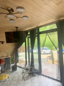 Уютный домик в стиле А-фрейм,находится в курортном черноморском поселке Агой ,граничит с лесом!Прекрасный вид из панорамного окна!В домике есть всё необходимое для проживания:посуда,постельные принадлежности,полотенца,посуда!Отличное место для тихого,семейного отдыха!Пешком до моря 20-30 минут,на машине 5-7 минут!На территории есть мангал,парковка для машин!Срок аренды не менее трёх суток!