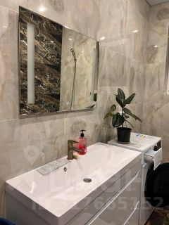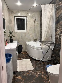 Ванная комната с ванной, стиральной машиной. (Фен, утюг, гладильная доска)