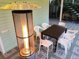 Камин-обогреватель на террасе для теплых уютных вечеров