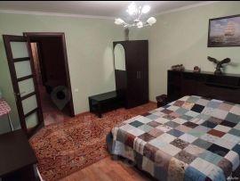 ДВЕ СПАЛЬНЫХ КОМНАТЫ: одна проходная комната с двумя кроватями (1м 2м) с оооочень мягкими матрацами (можно кровати соединить и получится одна огромная двухспальная кровать (2 м 2м), как показано на фото), вторая комната с двуспальной кроватью и балконом во двор, 2 телевизора с НТВ+, кондиционер, интернет WiFi, сейф для документов, утюг с гладильной доской, фен, кондиционер.