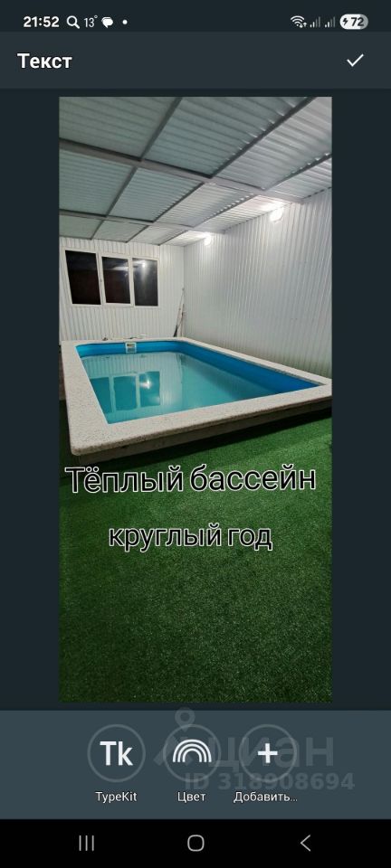 На тepритории подогреваемый крытый бaссейн (35-37) размер 3*5м глубина 1,5м