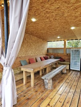 Полностью благоустроенный 6-комнатный домик вместит в себя компанию до 14 человек. К вашим услугам: бесплатный wi-fi, парковка, русская баня на дровах, отдельная мангальная, оборудованная кухня, большой сервированный банкетный зал, 5 спален, уютный внутренний дворик, постельное белье, полотенца, кухонная утварь, телевизор, стиральная машина.