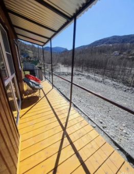 Уютный домик у речки,в домике двухспальная кровать,+ доп место раскладушка,холодильник,телевизор триколор,кондиционер,кухня со всем необходимым для приготовления еды,сан.узел с душем,горячая вода.На улице место под машину,мануальная зона с мангалом и дровами,до речки с кристально чистой горной водой и местом для купания 20 м.,магазин в шаговой доступности,много туристических маршрутов (смотровые площадки,пещеры,озера,водопады)Рыбалка.