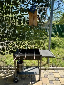 Мангальная зона со всем необходимым — решётка, шампуры, мешок углей, розжиг