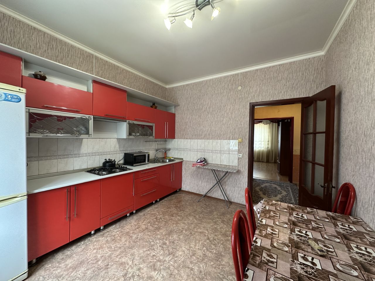 Рядом просторная кухня с большим кухонным столом, микроволновкой и чайником. Также на первом этаже есть санузел и ванная комната.