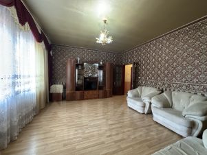 На первом этаже комната-гостиная с раскладным диваном, креслами и телевизором.
